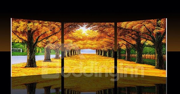 Autumn comes whem golden leaves spread the path. The material canvas is easily wiped with a damp cloth and it is waterproof. This product consists of three pieces with 16*16in for each. They should be hung horizontally. You can hang them on the decorative wall of any rooms.