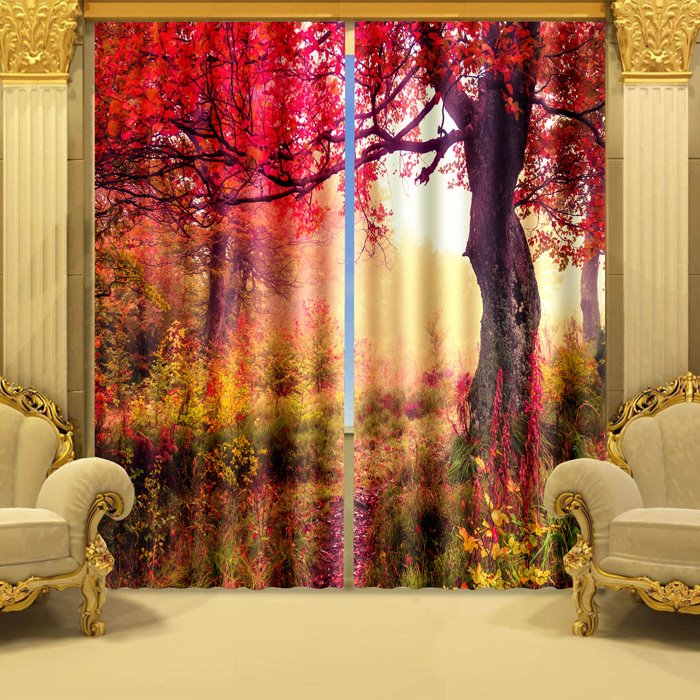 This brightly and elegant Beautiful Red Tree Print Vibrant Color 3D Curtain is sure to bring a breath of fresh air into your entire room. Made with 100% polyester this high quality textured fabric will create a smooth and soft draping effect and also can prevent strong sunlight for you. The digital images we display have the most accurate color possible.