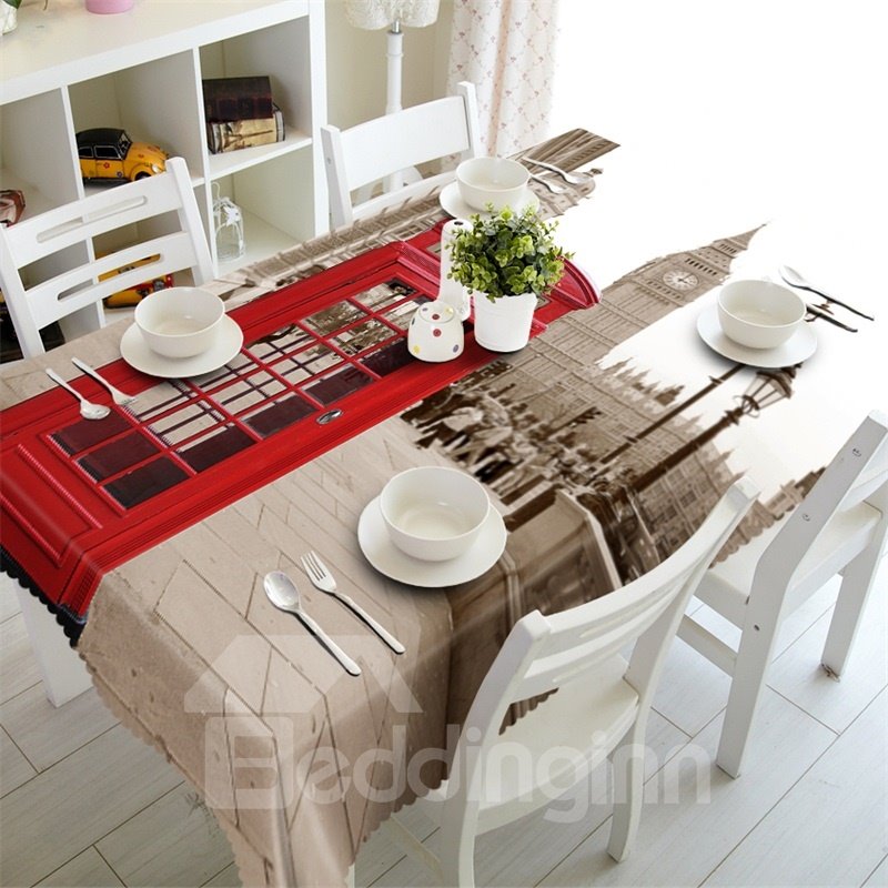 3D Big Ben and Retro Telephone Booth Printed Home and Outdoors Table Runner Cloth Cover