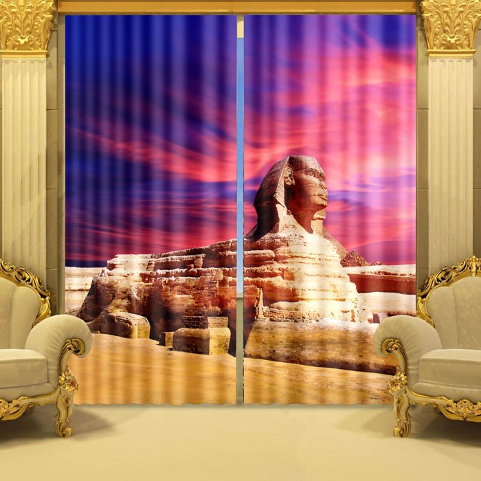 Want to decor your room with this great Egyptian Sphinx? Look at our curtain with 3d effect which is made by high-quality Polyester materials and skillful process, this curtain not only has blackout and dust-proof features but also can be a better decoration to your room. Meanwhile, it’s easy to install to wash and also can be used for a long time without harmful smell. Its quality has successfully passed by QA.