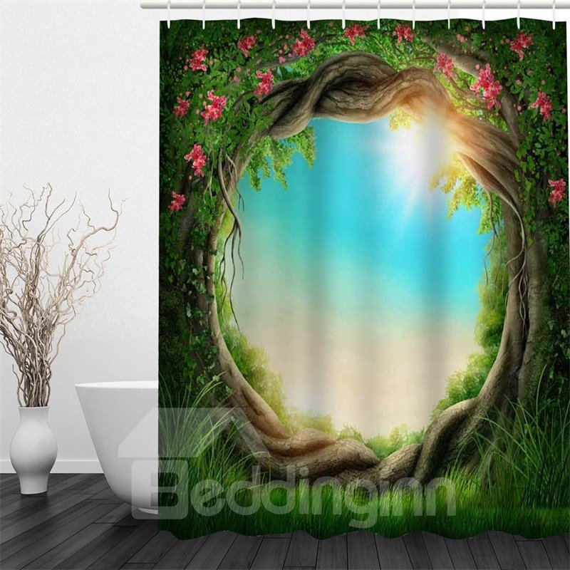 3D Green Branches Twist Polyester Waterproof Antibacterial and Eco-friendly Shower Curtain