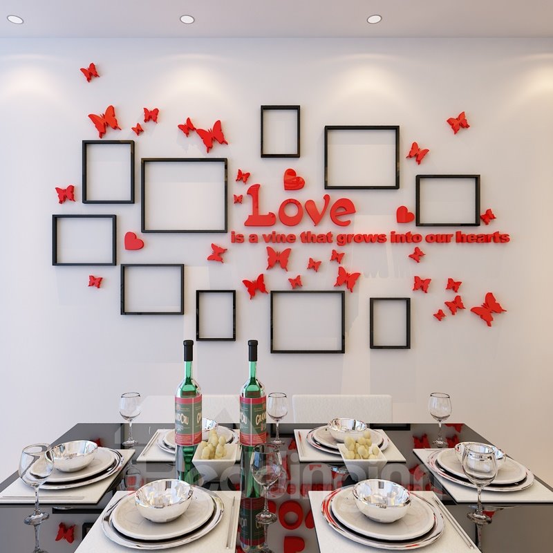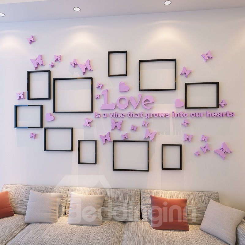 The wall stickers gives you another vision to feel family taste. This product consists of love letters, butterflies and 10 photo frames wall stickers. In the house, you can feel the power from love. It is believable that you will have good mood when you enter your house everyday. In addition, you can integrate photos into photo frames.