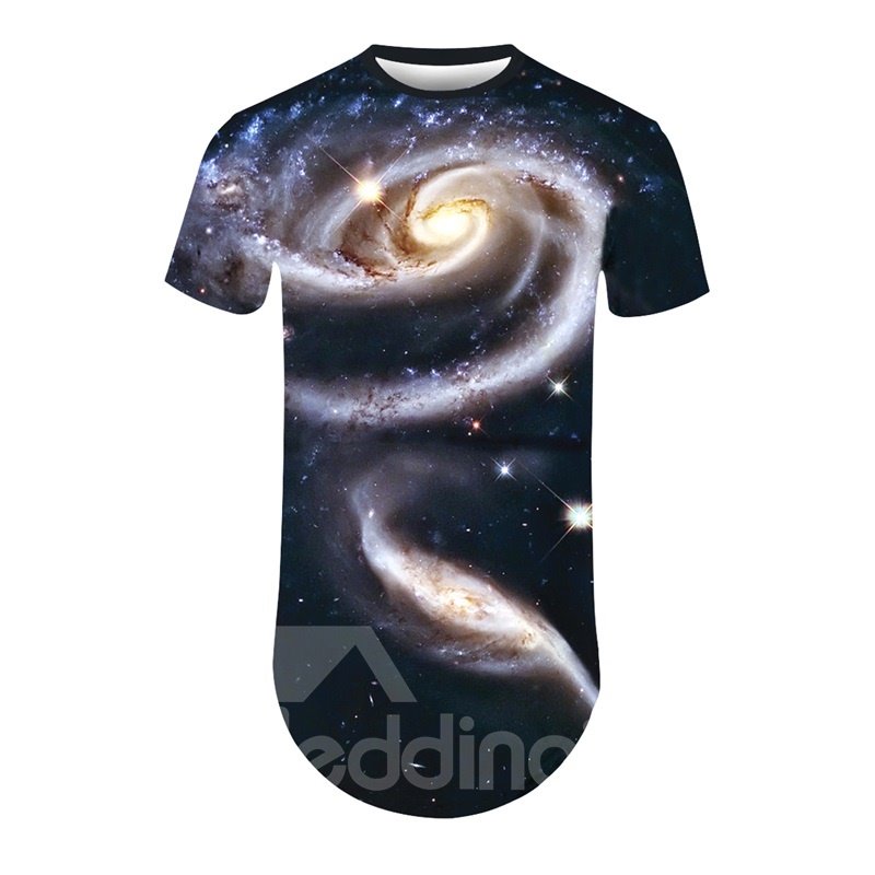 3D Painted Modern Round Neck Black Galaxy Pattern Men T-Shirt