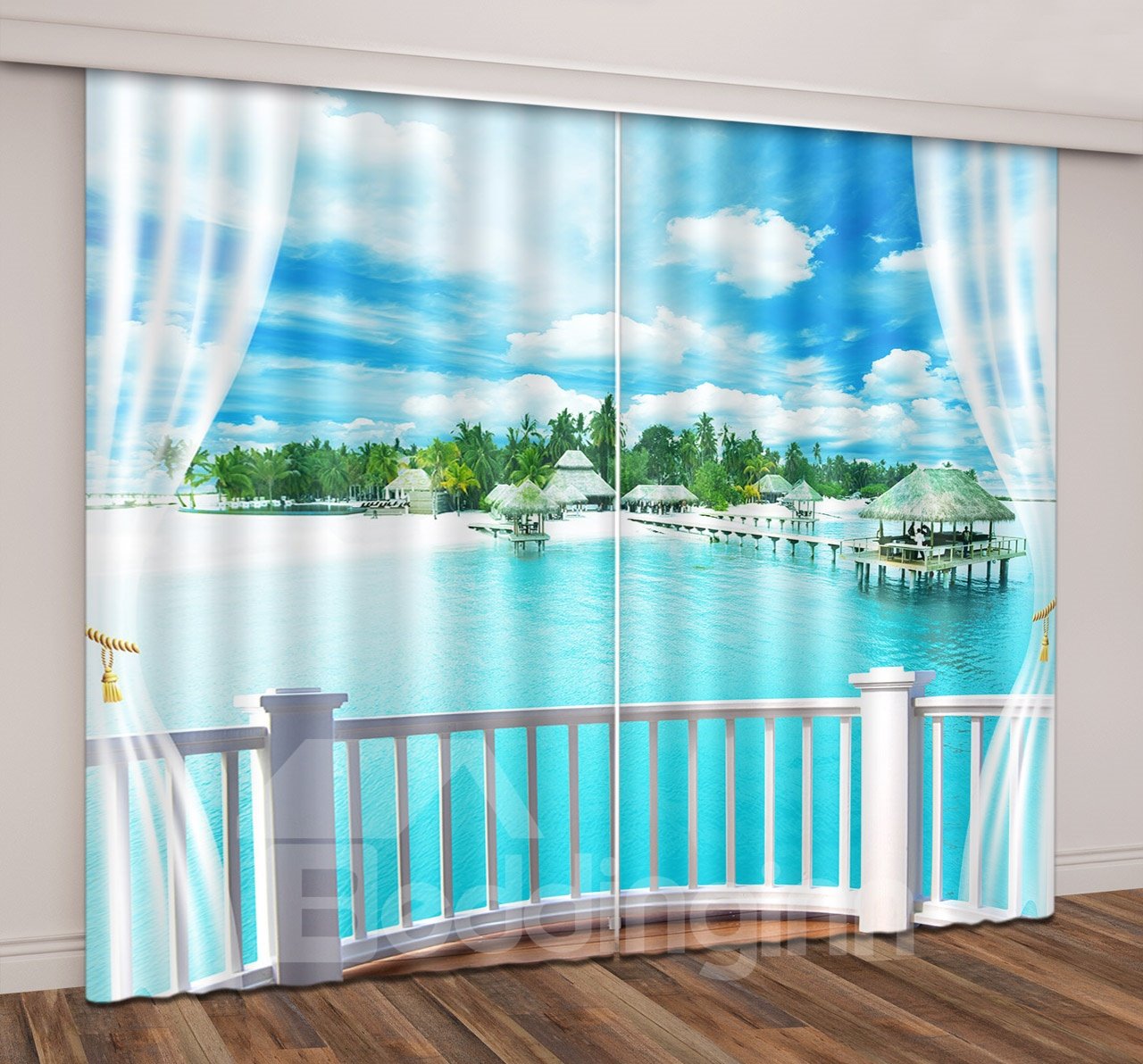 3D Printed Blue Sky Tropical Beach Romantic Travel Seaside Curtain