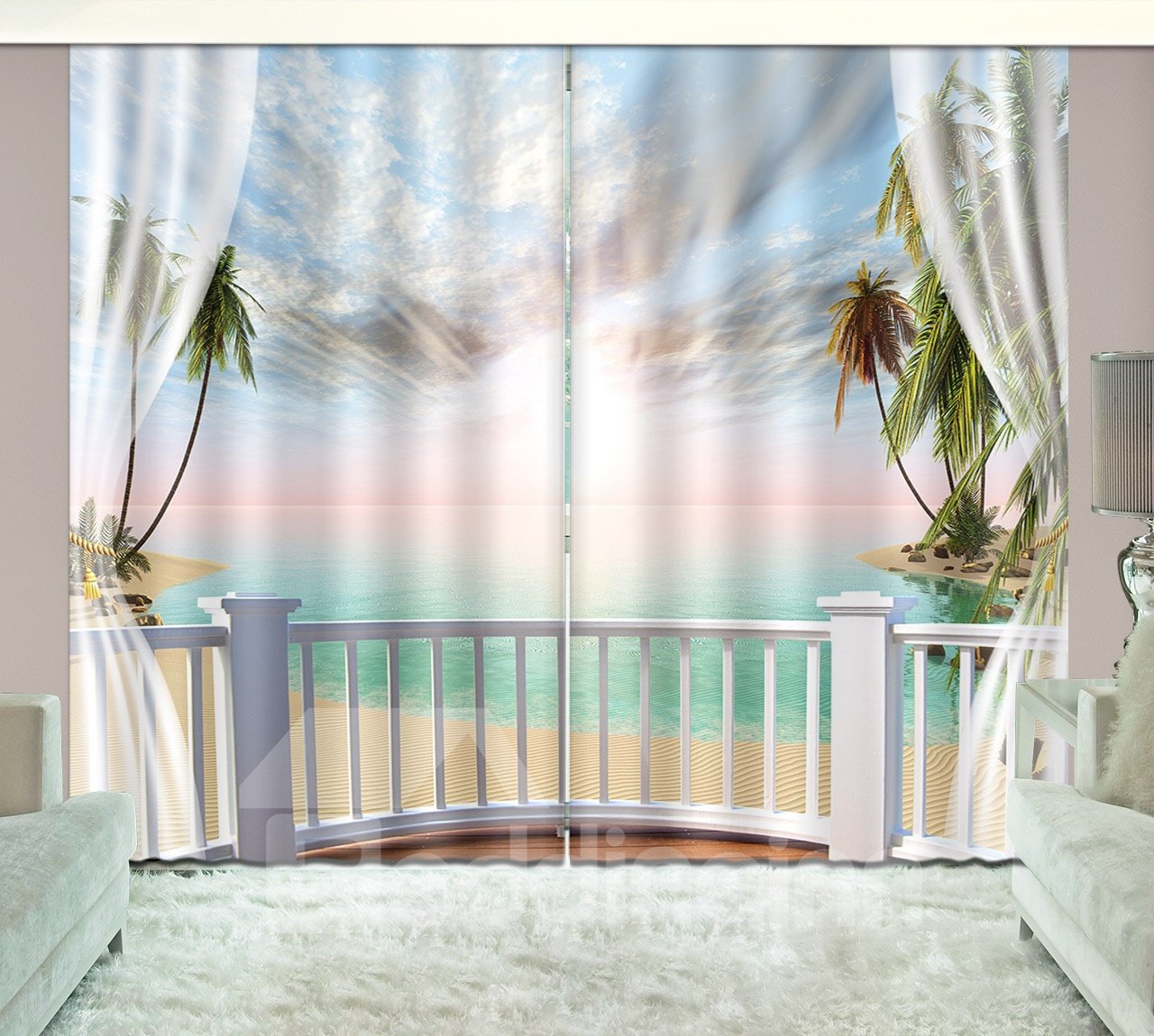 3D Printed Tropical Beach Sunset with Coconut Trees Scenery Custom Living Room Curtain