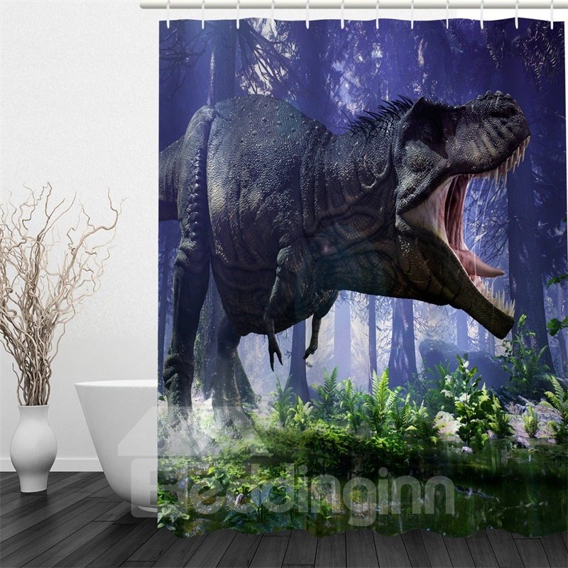 3D Roaring Dinosaur Pattern Polyester Waterproof Antibacterial and Eco-friendly Shower Curtain