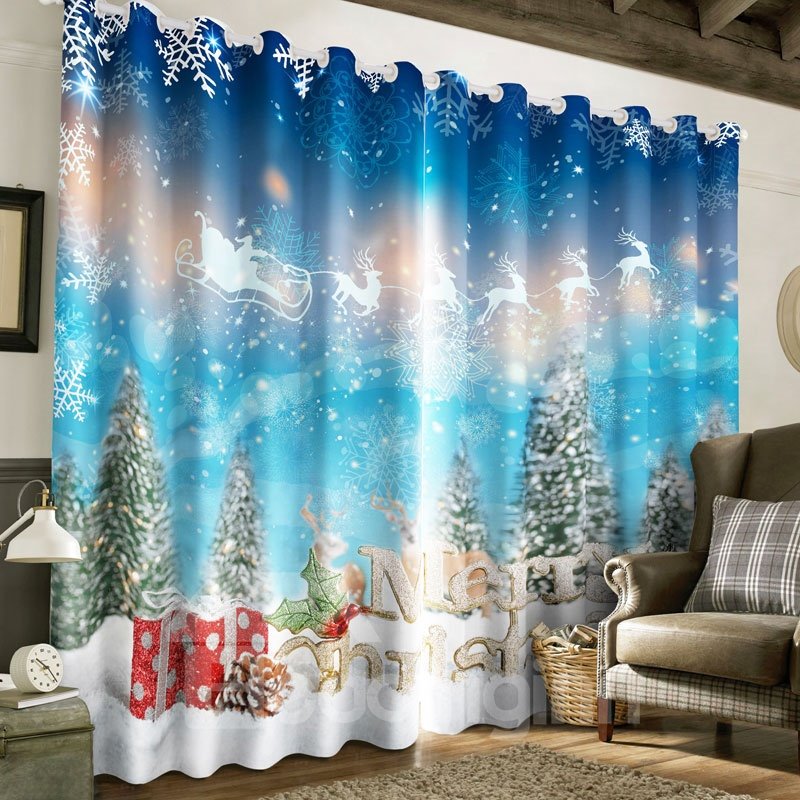 Be the first to review “3D Snow Pine Trees and Bright Stars with White Snow Printed 2 Panels Decorative Curtain”