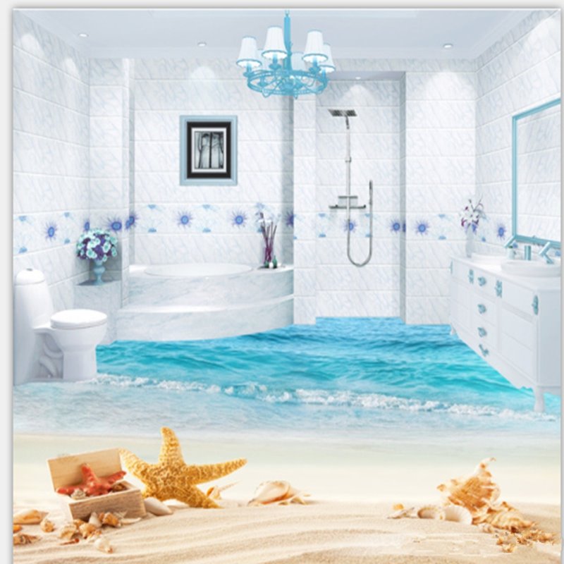 Beach is where everyone would like to. This product provides you beach scenery you can enjoy when you stay at home, especially lying on the bed on this floor mural, feeling excited like being in the sea. The default price online is for 1 square meter. When you choose larger size (another 6 sizes) or more quantities according to your rooms, including bedroom, bathroom, dining room, and other decorative rooms, the price is changed accordingly. In addition, it is waterproof.