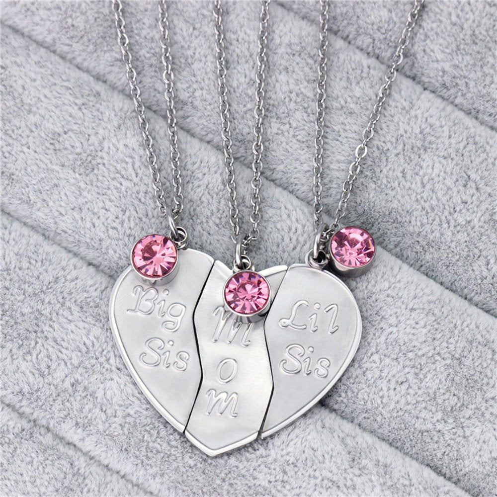 3Pcs Mother Daughter Necklaces Titanium Steel Big Sis Mom Little Sis Pendant Puzzles Necklace Heart-Shaped Family Jewelry Gift Birthday Thanksgiving Mother’s Day Gifts
