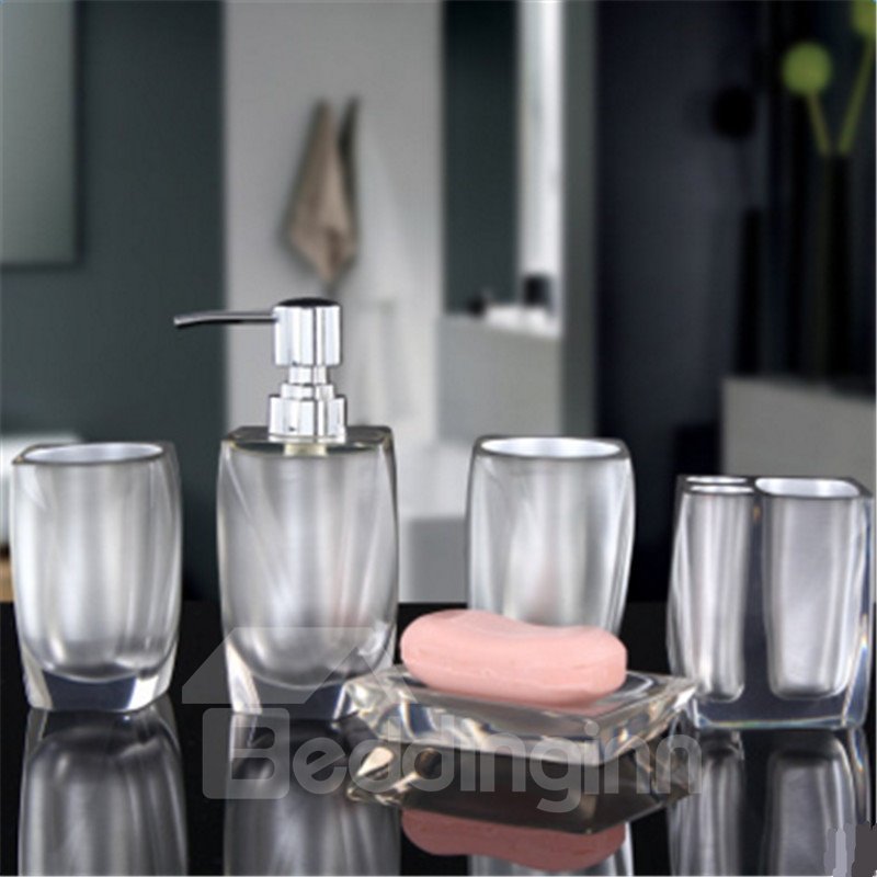 5-Piece Crystal Resin Eco-friendly Durable Bathroom Ensemble