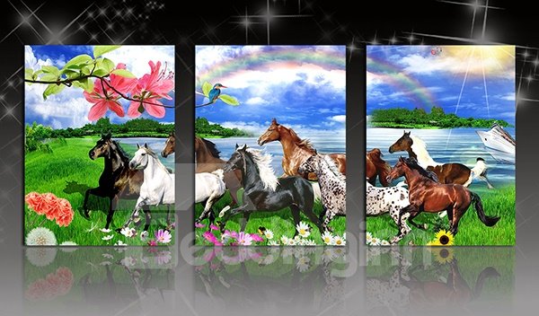 Amazing Horses in the Field 3-Panel Canvas Wall Art Prints