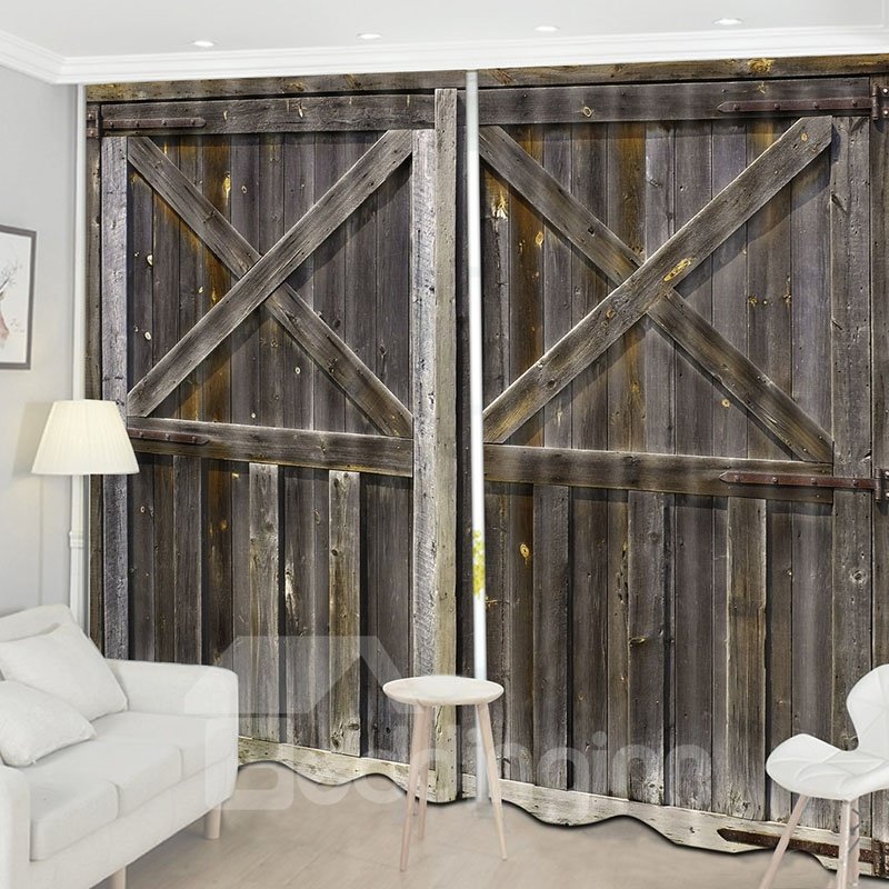 Beddinginn Decoration 3D Old Wooden Barn Door Curtain