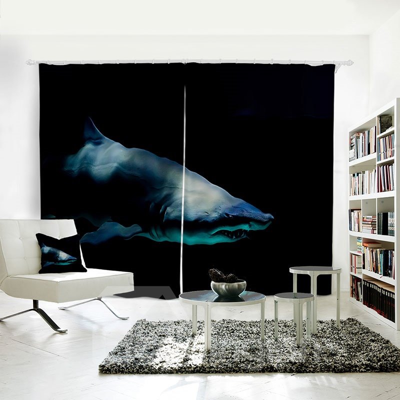 Black Dark Shark 3D Animal Polyester Shading Curtain