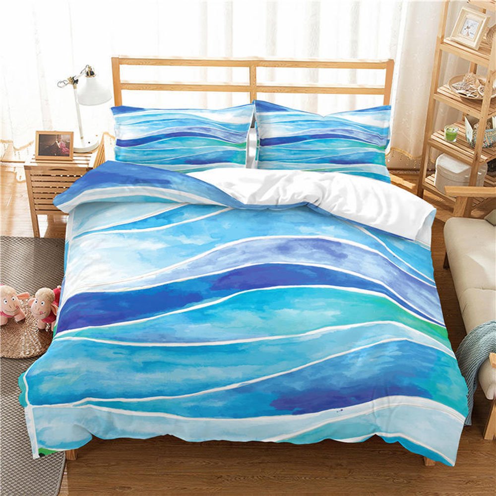 Blue 4 PCS Duvet Cover Set Reactive Printing Dry Cleaning Polyester Bedding Sets 2 Pillowcases 1 Duvet Cover 1 Flat Sheet