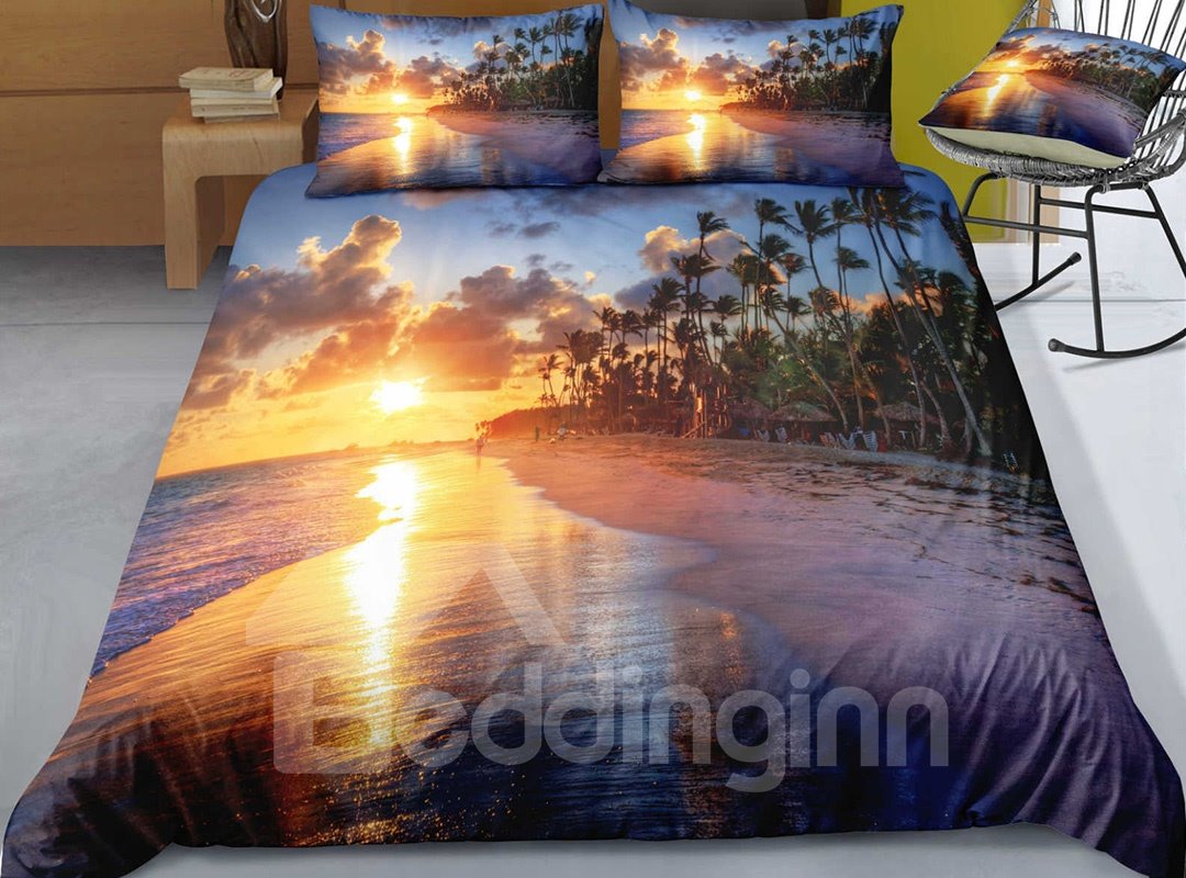Breathable And Comfortable The Setting Sun Printed 3-Piece 3D Bedding Sets/Duvet Covers