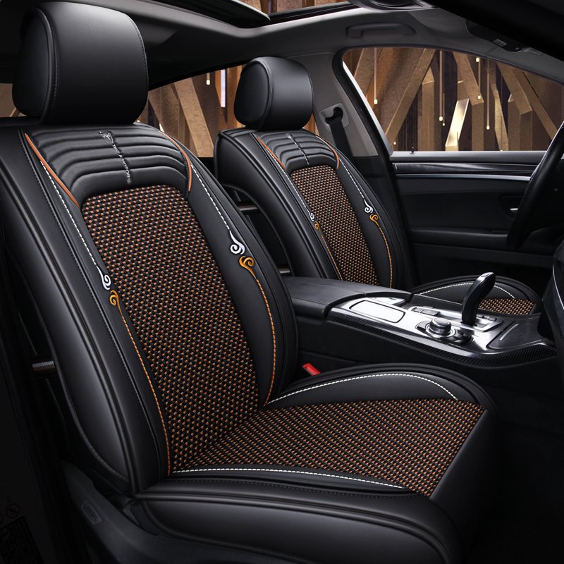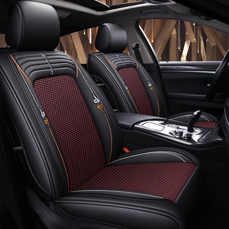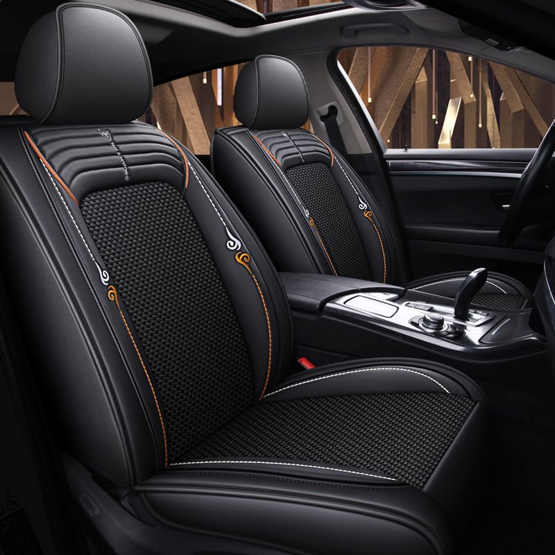 Car Seat Covers Full Coverage Soft Wear Resistant Durable Skin Friendly Man Made Leather and Ice Silk Airbag Compatible 5 Seater Universal Fit Seat Covers for Cars SUV Pick-up Truck
