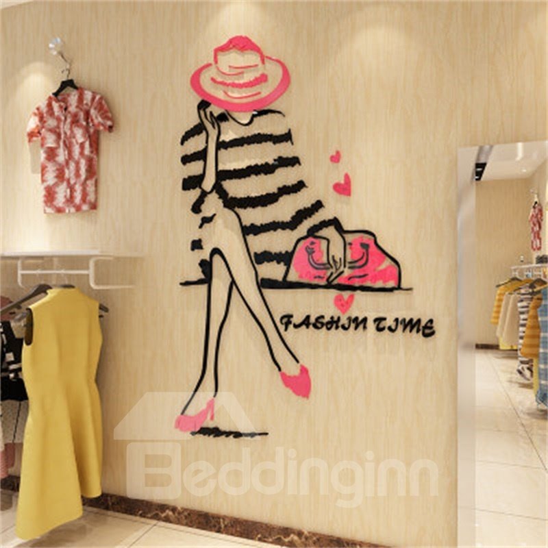 SKU: 8879407268139-cartoon-figure-small-girl-pattern-3d-acrylic-wall-sticker