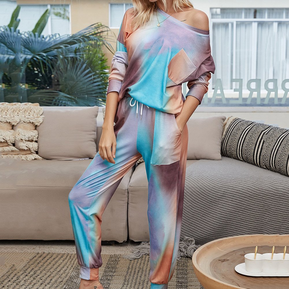 Be the first to review “Casual Color Gradient Lace-Up Long Sleeve Pocket Women’s Pajama Suit”