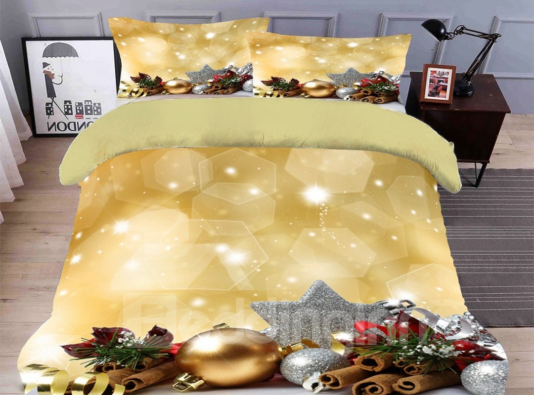 Christmas Ornament Duvet Cover Set 3D Christmas 4-Piece Polyester Bedding Sets/Duvet Covers