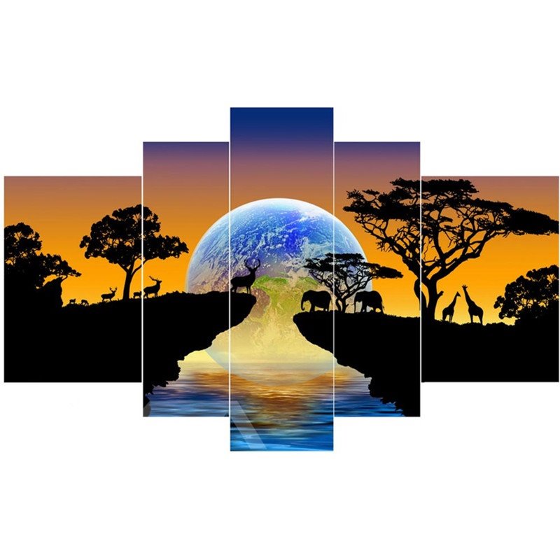 Canvas is non-glare, moisture resistant and UV protected, which is easy to clean. Simply wipe down with a damp cloth as needed. Five prints should be hung on the wall horizontally. It is better that these prints should be integrated into frames prepared.
