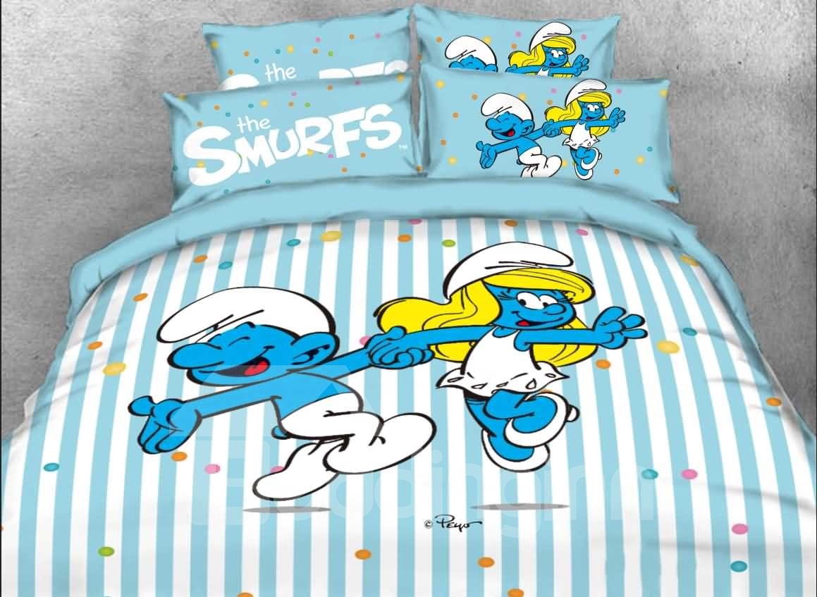 Clumsy Smurf and Smurfette Dancing 4-Piece Blue Bedding Sets/Duvet Covers