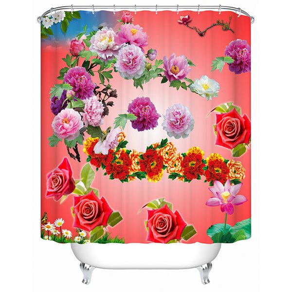 Colorful Champagne Roses Print 3D Bathroom Shower Curtain