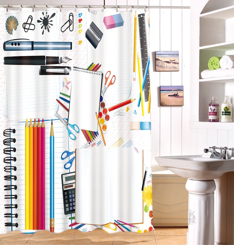 Concise Lovely School Stationery Pattern 3D Shower Curtain