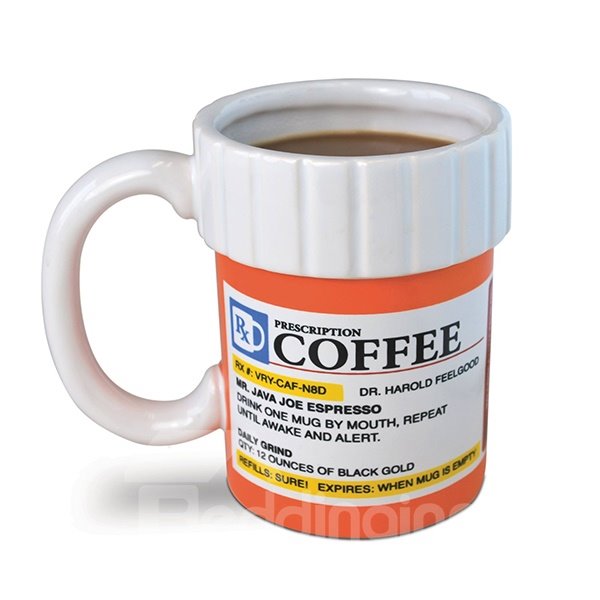 This hilarious ceramic coffee mug looks like a perscription medicine bottle,