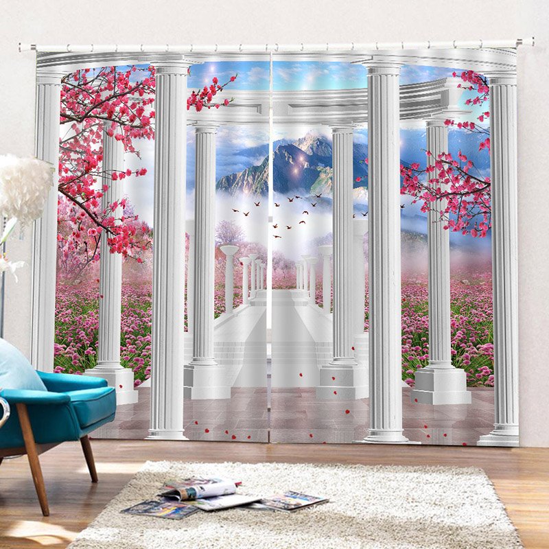 Creative Landscape 3D Print Blackout Curtains Flowers and Mountains Custom 2 Panels Drapes for Living Room Bedroom Decoration No Pilling No Fading No off-lining Polyester