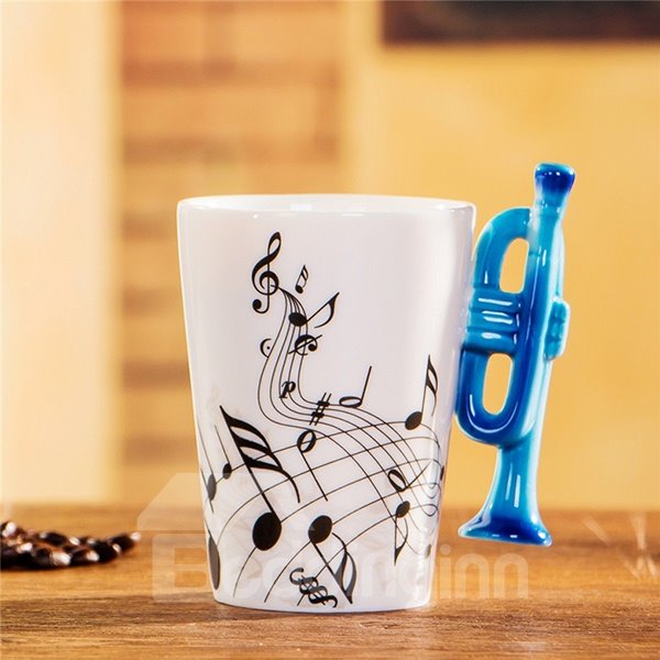 Creative Musical Theme Trumpet Design Handle Ceramic Coffee Mug