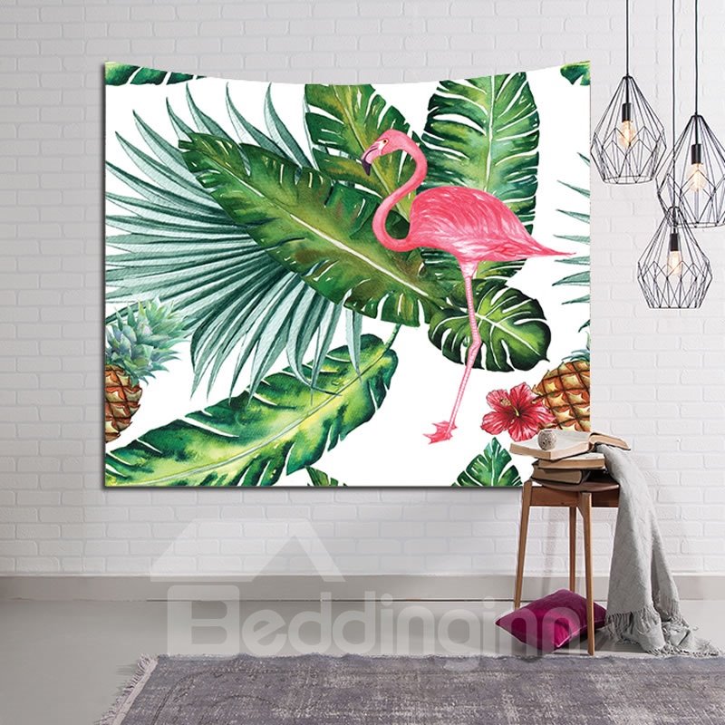 Decorative Tropical Plants and Flamingo Hanging Wall Tapestry