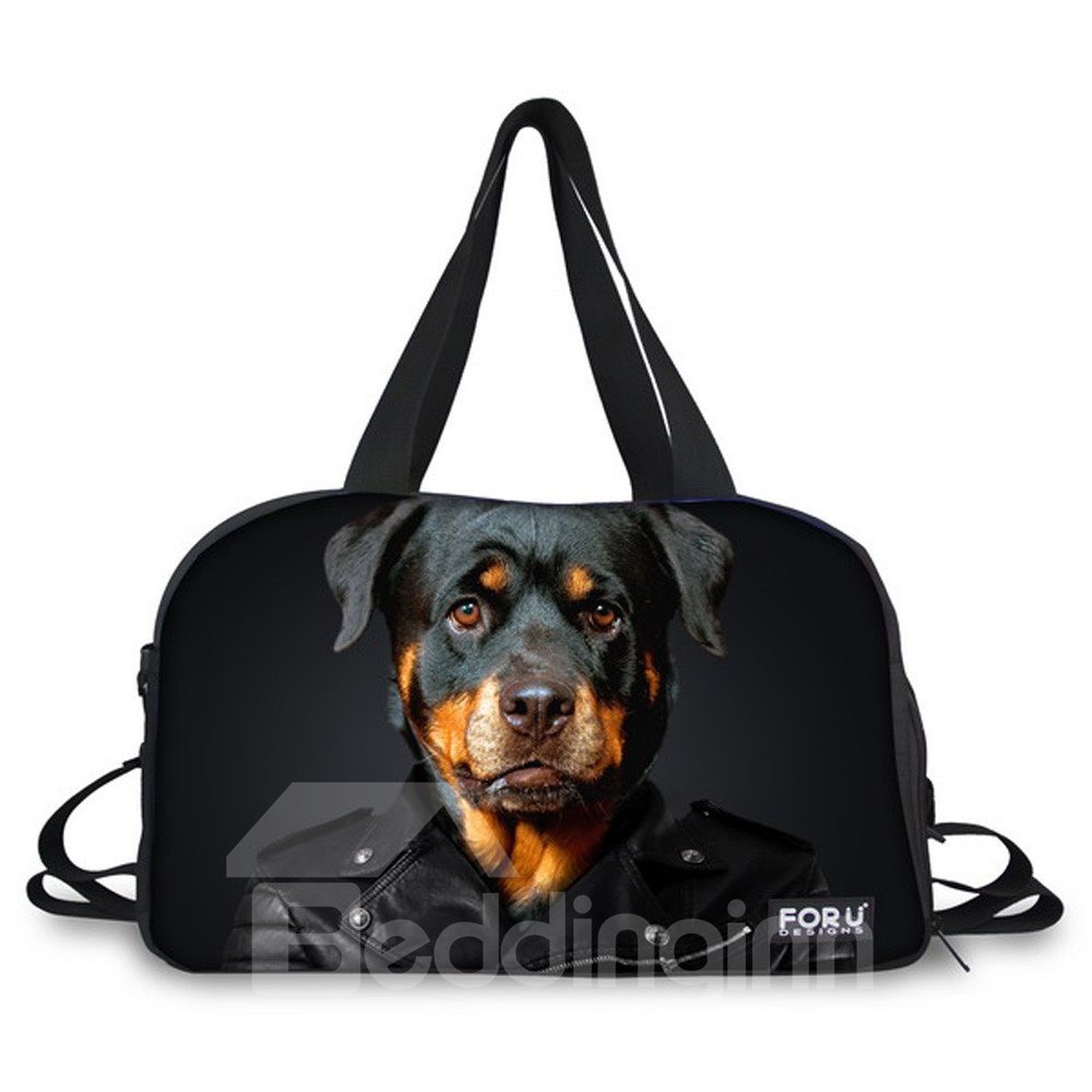 Dog with Clothes Nylon Large Capacity Shoulder Black 3D Travel Bags