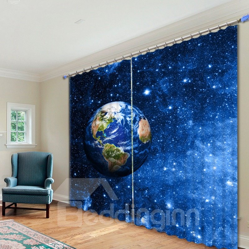 Dreamy Earth and Galaxy Printed 3D Curtain
