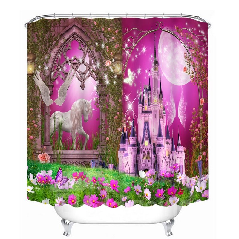 Dreamy Unicorn and Castle Printing Bathroom 3D Shower Curtain