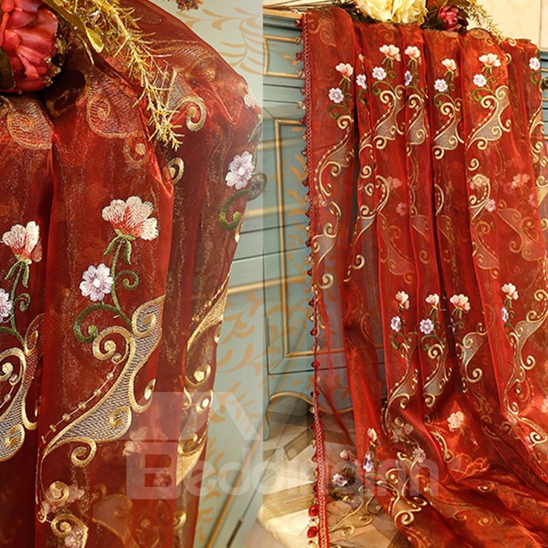 Curtain in blue with delicate embroidered pattern would add more elegance to your life. This curtain can be a better decoration to your room and also add the charm of un-clearness. It’s easy to install to wash and also can be used for a long time without harmful smell. Its quality has successfully passed by QA.
