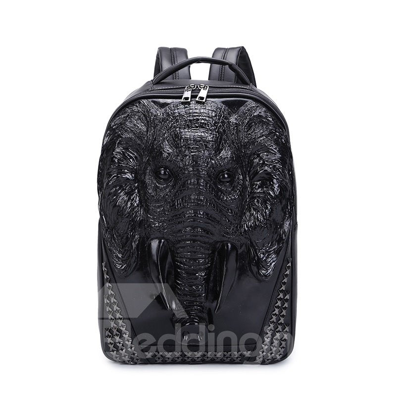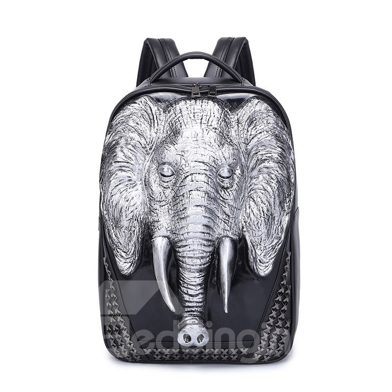 Elephant Head Fashion PU Leather Casual Laptop Backpack