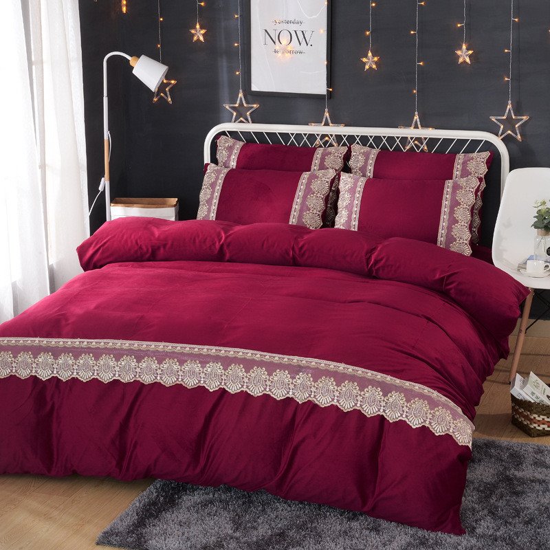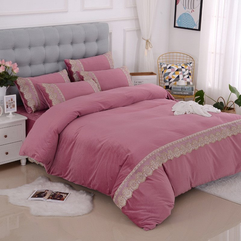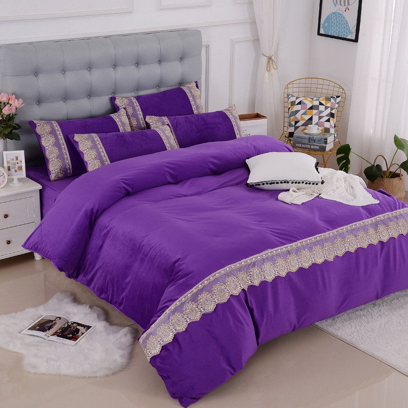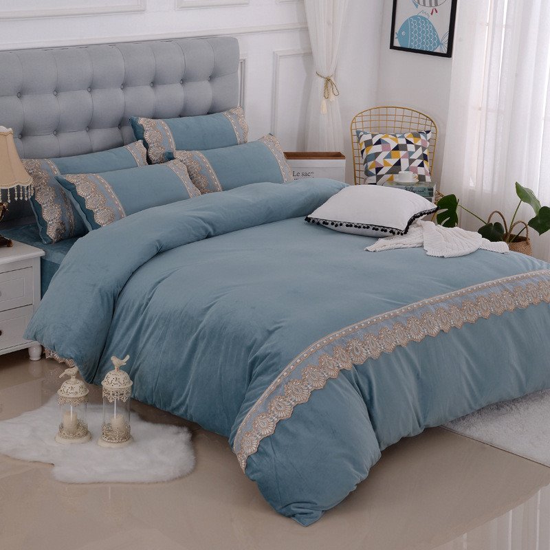 European-style Simple Lace 4-Piece Plush Bedding Set/Duvet Cover Set Warm Solid Color Fluffy Bedding