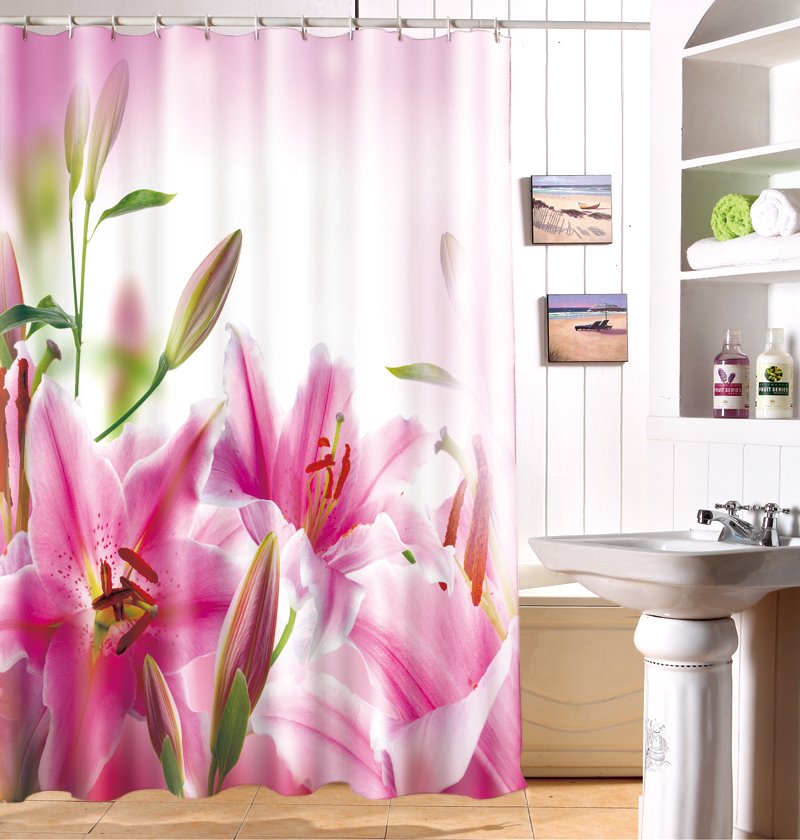 Fancy Blooming Pink Lily 100% Polyester Bathroom Shower Curtain