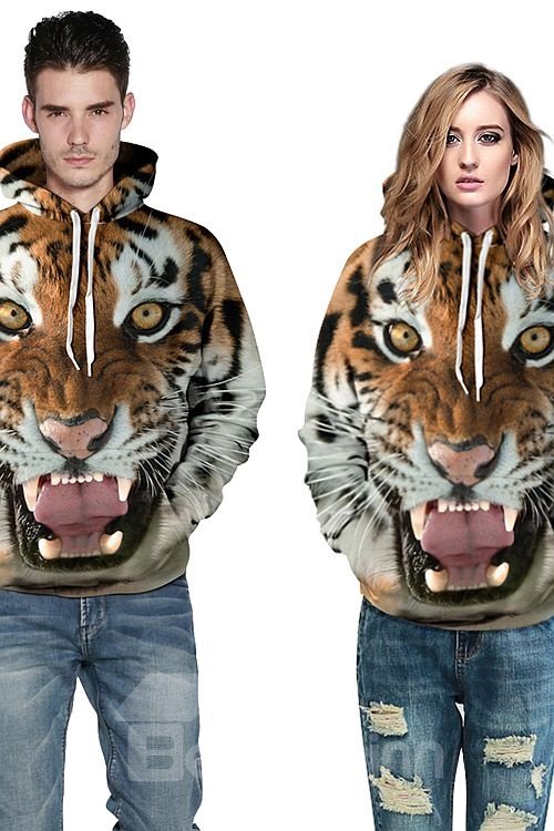 Creative tiger pattern looks super cool. This hoodie is very soft and will feel nice on your skin. The design is very pretty and the color is vibrant. No need to worry about it coming off in the washer no fade. The pockets in the front are of great size to keep your hands warm or carry stuff.