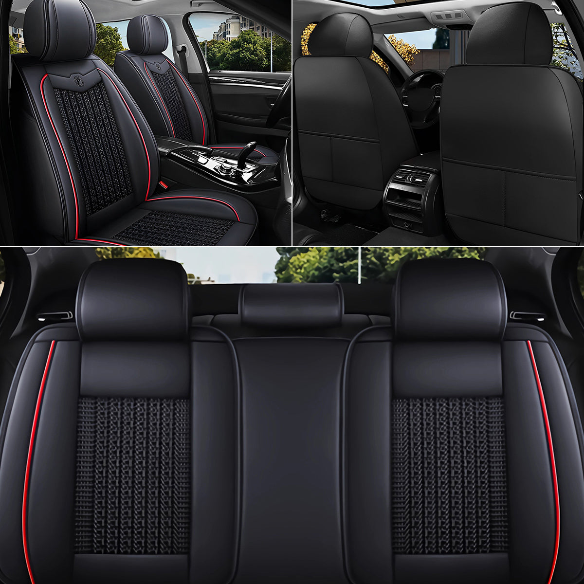 Time to make your car look and feel fresh with our leatherette and fabric car seat covers! Our car seat covers are made of quality faux leather and knitted fabric, so they’re durable, cool and comfortable. The weave knitted elements in the middle make your car stylish. On the other hand, the fabric won’t heat up that much with the sun on the dog days. The seamless mix of faux leather and fabric, along with the right amount of color accent, bring your car a unqiue modern yet classic look. Side airbag compatibility and storage pocket design on the back, make the covers both stylish and functional.