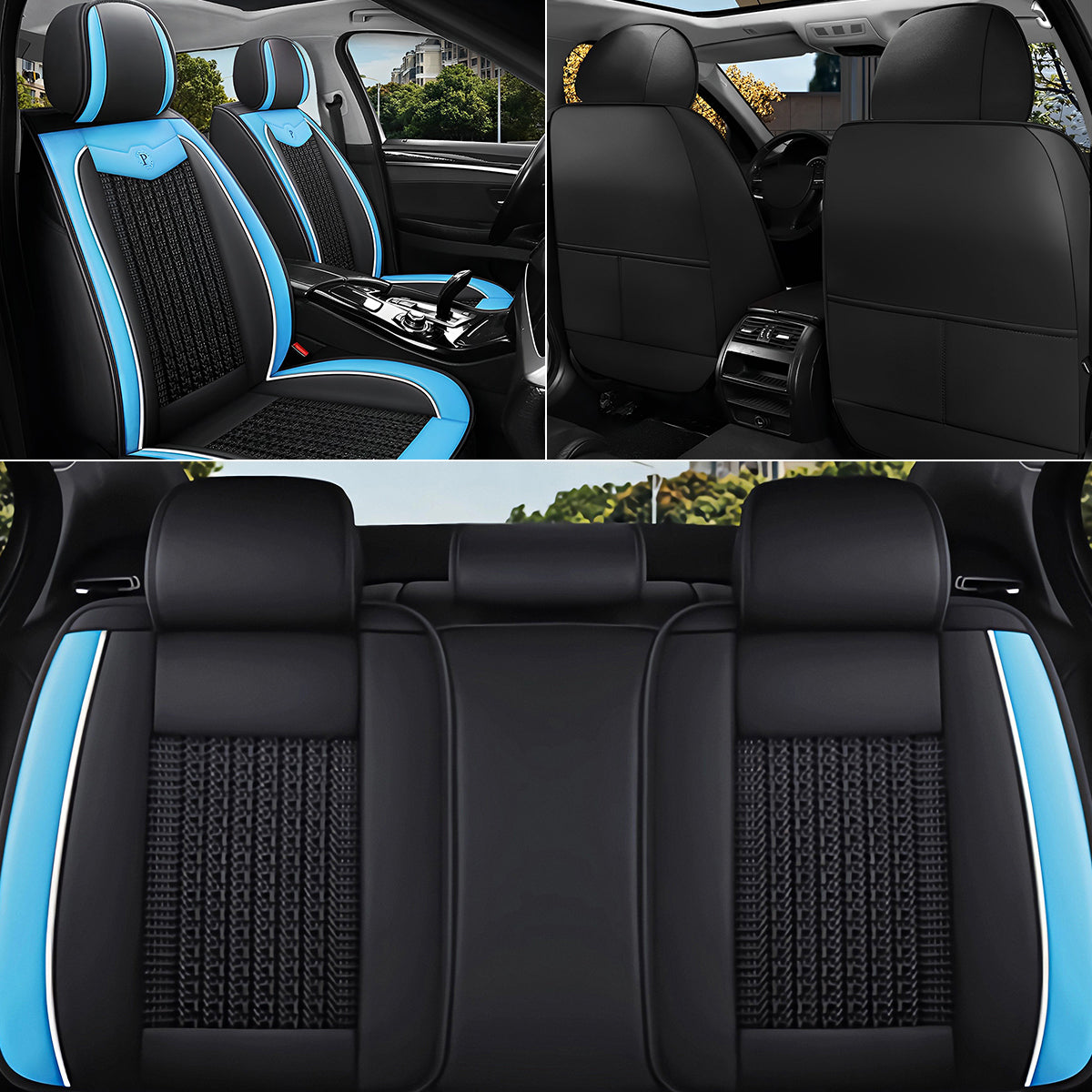 Faux Leather and Fabric Universal Car Seat Cover Full Set for 5-Seat Sedan SUV Weave Knitted Pattern