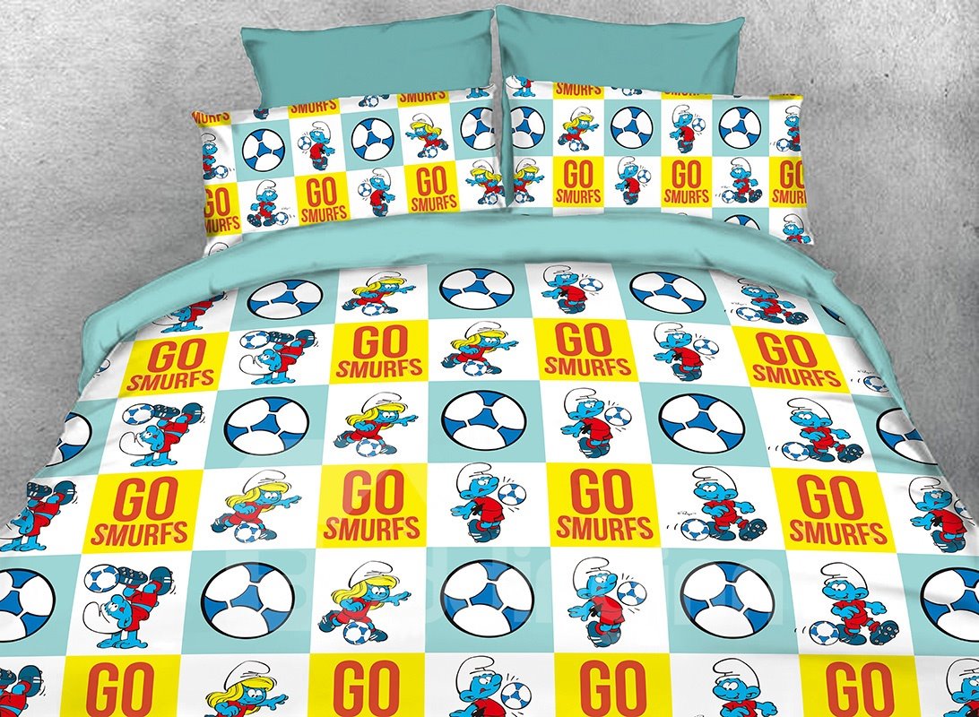 Too cute to resist this lovely Soccer Smurf and Smurfette bedding sets. The classic cartoon character will set a great vibe in your bedroom. The happy hues help it mingle with nearly any bedroom’s decor. It is also a smart gift for kids or soccer lovers in this shopping season. Made of cotton and tencel blend, you’ll experience all the breathable benefits of two materials renowned for adding softness and comfort. Features a hassle-free hidden zipper closure, make it easy and efficient to put this duvet cover on your comforter.