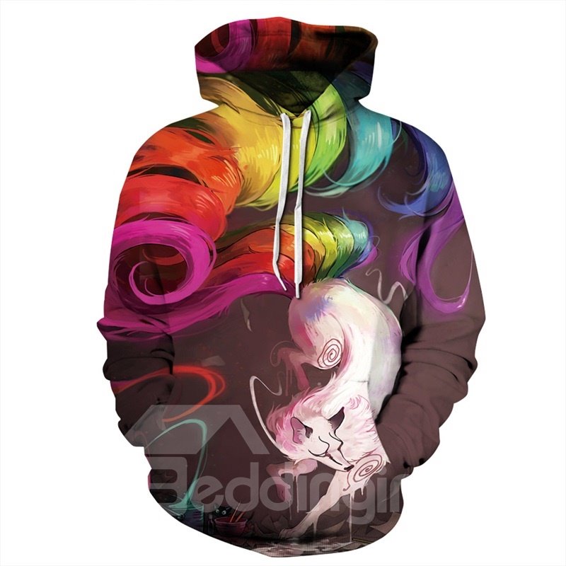 SKU: 8885344665899-fox-colorful-tails-long-sleeve-3d-pattern-hoodie
