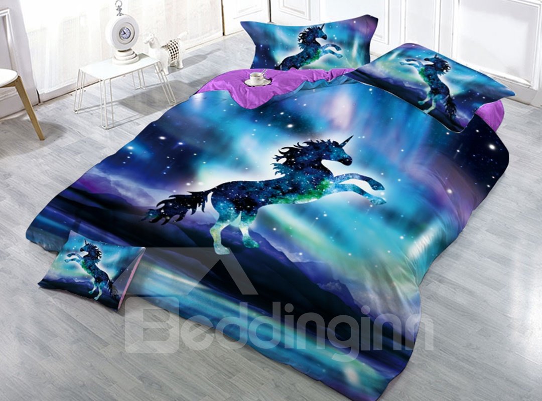 Galaxy Unicorn Printed 3D 4-Piece Bedding Set/Duvet Cover Set Microfiber