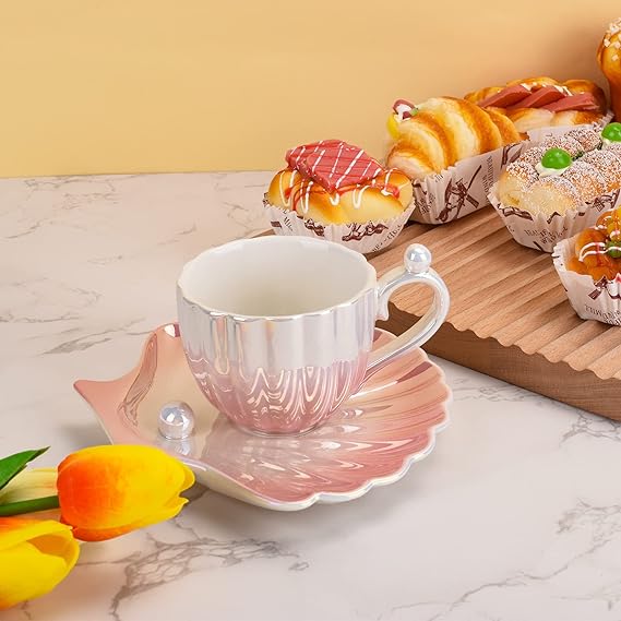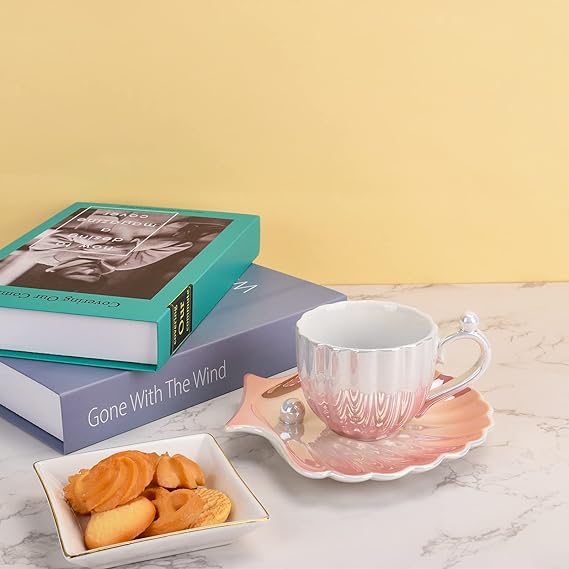 Be the first to review “Gradient Color Ceramic Coffee Mug with Saucer, Glossy Pearl Shell Style Tea Cup 6.5 Oz for Tea Latte Milk”