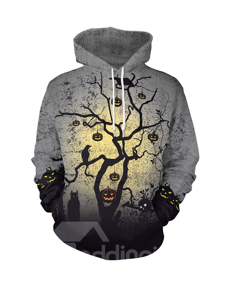 Halloween Pumpkin and Tree Loose Model Polyester 3D Painted Hoodie
