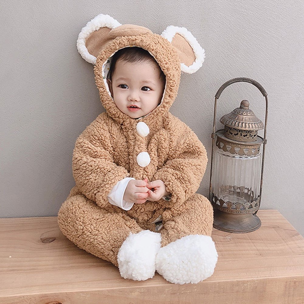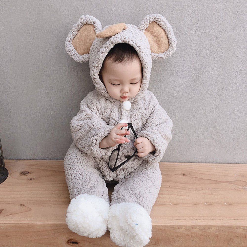 Chenille and flannel footed costume jumpsuit with character hood