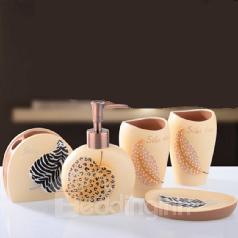 Leaves Printed 5-Piece French Style Resin Durable Bathroom Ensemble