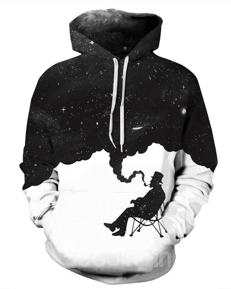 So warning the pattern is.A smoking gentleman making the white into black. The material is soft and feels good on the body. With the pockets in the front are of great size to keep your hands warm or carry stuff.