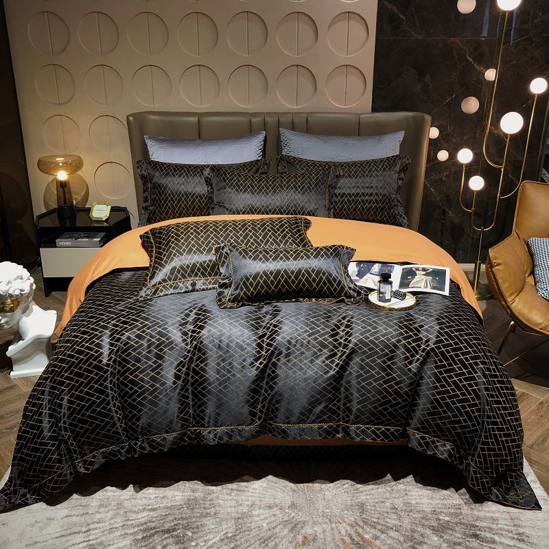 Luxury Silky Satin Jacquard 4-Piece Bedding Set Skin-friendly Soft Cotton Duvet Cover Set Queen King Size